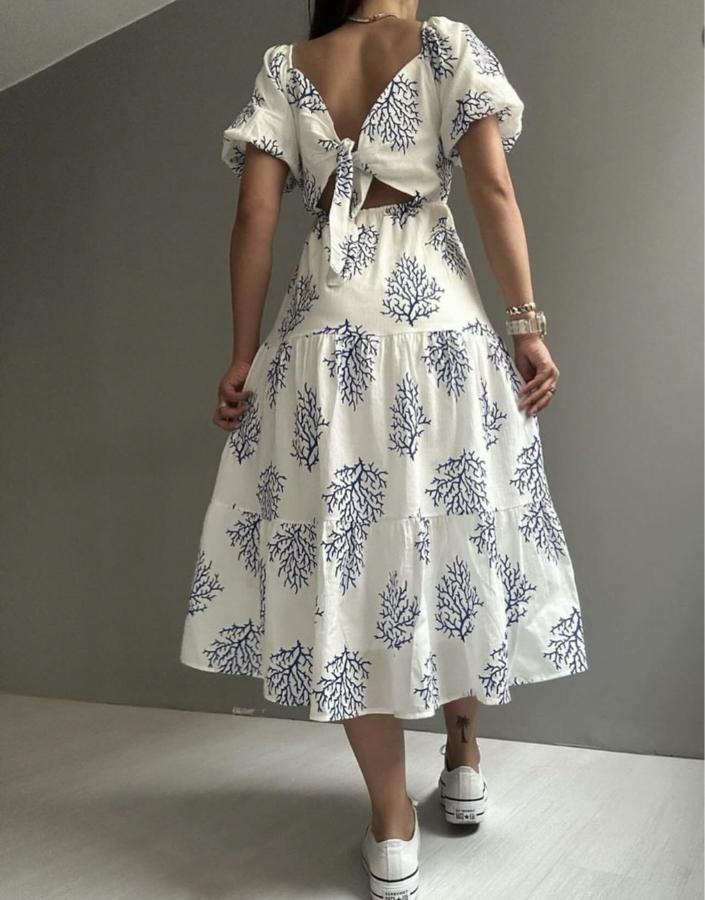 Sırt dekolteli keten elbise
